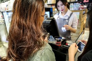 Handed to customers after they have made their order, or purchase at the counter / cashier.